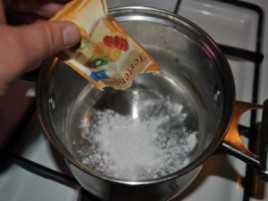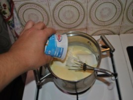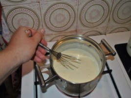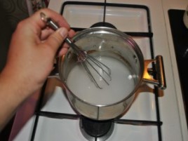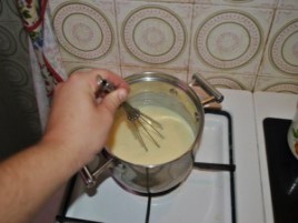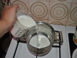 V lonec vlijemo 5 dl mleka in ga zavremo. |