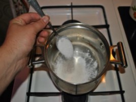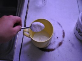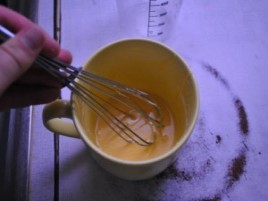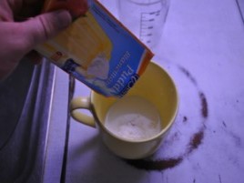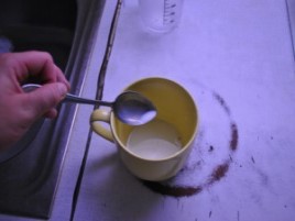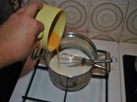 Iz lonca z mlekom vzamemo 6 žlic mleka. |