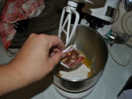 V lonec vsujemo vrečko svetlega preliva za sladice. |