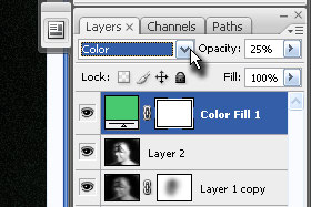 ![]() Temu layerju določite senčenje na Color in Opacity na 25% (glej sliko). |