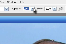 ![]() Zgoraj v orodni vrstici določite Opacity na okoli 60% (glej sliko). |