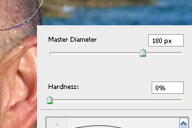 ![]() Kliknite z desnim miškinim gumbom na sliko in določite poljubno velik Master Diameter (velikost čopiča) in Hardness na 0% (glej sliko). |