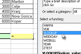 Poiščemo funkcijo VLOOKUP. |