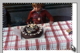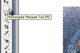![]() Ponovno izberite orodje Rectangular Marquee Tool (bližnjica je tipka M) in označite fotografijo tokrat brez odvečne bele podlage (glej sliko). |