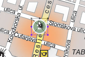 Označite sedaj krog okoli lokacije vaše točke na zemljevidu.