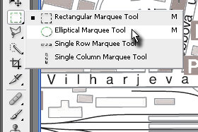 Držite z miško na orodju Rectangular Marquee Tool (bližnjica je tipka M) toliko časa, dokler se ne prikažejo ostala orodja. |