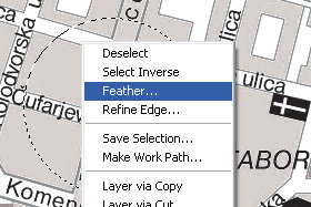Kliknite z desnim miškinim gumbom na označeno polje in izberite Feather...