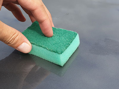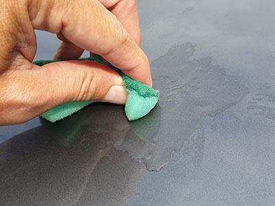 ![]() In jo čez nekaj sekund z uporabo gobice (mehki spodnji del) začel odstranjevati. |