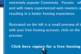 Spodaj poiščite in kliknite na povezavo Click here signup for a free hosting account. |
