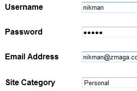 Username sem izbral nikman. Username bo tudi del imena spletnega naslova, kjer boste gostovali spletno stran. V mojem primeru je to www.nikman.co.cc. Password (geslo) sem določil nekaj enostavnega, v polje Email Address sem vpisal svoj veljavni e-poštni naslov in Site Category določil Personal. Nadaljevanje v naslednjem koraku... |