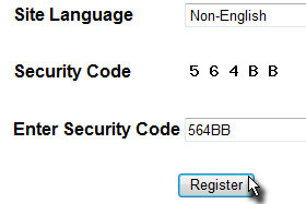 Site Language sem določil Non-English (strani, ki niso v angleškem jeziku), v polje Enter Security Code pa sem prepisal polje Security Code (glej sliko).