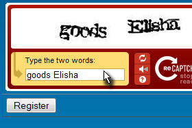 V polje Type the two words vpišite malce težko razumljivo napisane besede zgoraj (glej sliko). Potrdite na gumb Register. |