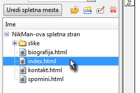 V Nvu kliknite na mali plus znak, da se prikaže vsebina celotne spletne strani in nato kliknite dvakrat na index.html, da ga odprete.