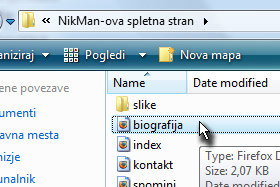 V oknu z raziskovalcem označite datoteka biografija, ki ste jo v prejšnjih lekcijah ustvarili.