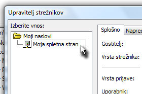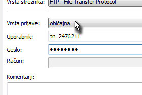 Vrsta strežnika naj bo označeno FTP - File Transfer Protocol. Nadaljevanje na naslednjem koraku... |
