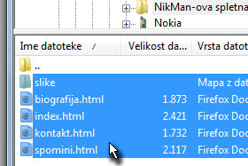 Držite tipko CTRL in klikajte po datotekah, da jih označite. Eno okno zgoraj je okno z vsemi mapami na računalniku. Jaz sem shranil mojo spletno stran pod moji dokumenti. |
