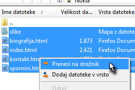 Kliknite na označene datoteke in mape z desnim miškinim gumbom in izberite Prenesi na strežnik.