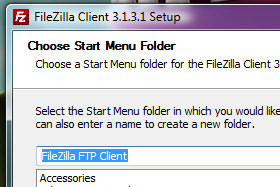 Prikaže se okno, kjer je potrebno vnesti ime mape, ki se bo nahajal v Start meniju.