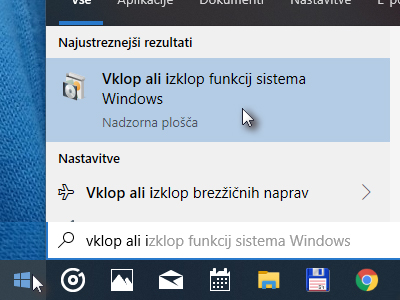 Kliknite na gumb Start in vpišite vklop ali izklop funkcij sistema Windows ter najdeno aplikacijo tudi odprite.