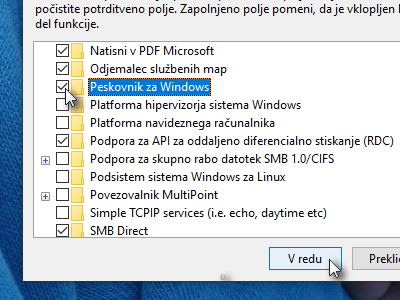 ![]() V novem oknu označite Peskovnik za Windows in kliknite na gumb V redu. Angleški prevod je Windows Sandbox. |