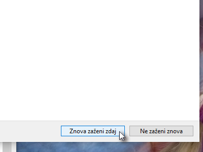 ![]() Ko se bo ta možnost dodala, bo potrebno znova zagnati računalnik. Kliknite na gumb Znova zaženi zdaj. |