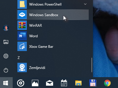 ![]() Ko se bo računalnik ponovno prijavil, kliknite na gumb Start in poiščite aplikacijo Windows Sandbox. Lahko jo tudi poiščete, podobno kot v prvem koraku, le da iščete besedo sandbox. |