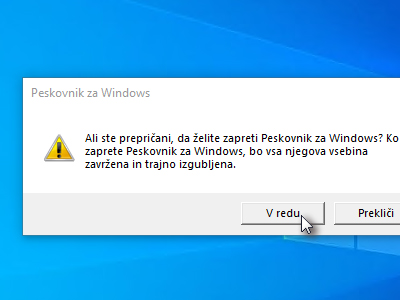 ![]() Peskovnik za Windows vas opozori, da boste vse spremembe in vsebino v njem izgubili. Kliknite na gumb V redu. Naslednjič, ko boste zagnali Peskovnik za Windows, bo ta ustvaril ponovno novo in čisto sliko Windows 10. Vedno pa bo ustvaril sliko iz zadnje različice. |