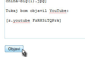 Premaknite se nazaj na stran z forumom in vpišite [z.youtube FzRHi3TQPrk] ter nato spodaj potrdite na gumb Objavi.
