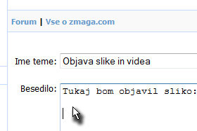 Premaknite se nazaj v okno foruma, kliknite v prazno polje za vstavljanje slike (glej sliko) in pritisnite tipki CTRL + V, da prej kopirano prilepite.
