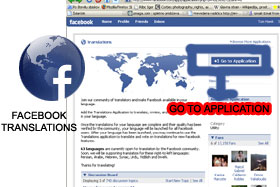 Tu boste lahko brali kaj počnejo vaši prijatelji, od koga so vaši prijatelji fani, v katerih skupinah (t.i. Groups) so ipd. Toda mi bomo najprej stran prevedli v slovenščino. V iskalnik vtipkajte Translations (prevodi). Na desni strani bo gumb View applications (Poglej aplikacijo) - izberite globus s Fjem (levi del slike). Potem pa na desni strani pritisnite gumb Go to applications (Pojdi v aplikacijo) (glej sliko) in pritisnite allow (Dovoli). |