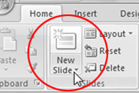 V zgornji vrstici se nahaja napis New slide (novi diapozitiv). Pritisnite ga in ustvarili boste nov diapozitiv (v nadaljevanju list).