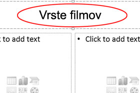 Na prazno stran, kliknite besedilo Kliknite, če želite dodati naslov. Napišite poljuben naslov. (v mojem primeru Filmi)