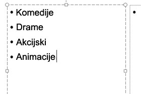 Sedaj v desen stolpec vpišite poljuben tekst. (v mojem primeru: komedije, drame, akcijski, animacije).