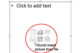 Vrnite se v PowerPoint. Pritisnite na desni stolpec. In izberite spodnjo levo ikono Insert picture from file. |