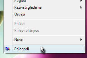 Kliknite z desnim miškinim gumbom na ozadje in izberite Prilagodi.