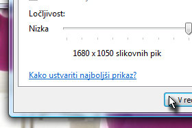 Prikaže se okno, kjer lahko vidite kako visoko je nastavljena vaša ločljivost na računalniku.