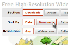 Ker želim videti najbolj pogosto prenesena ozadja, sem kliknil na Downloads. |