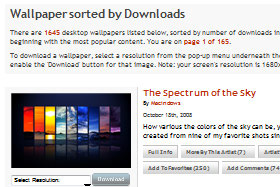 Na strani lahko sortirate ozadja po datumu (Date), število prenosov (Downloads), oceni (Rating)...