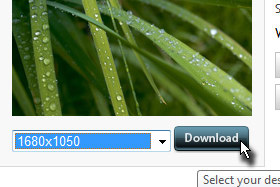 Ko boste našli ozadje, ki vam bo všeč, preko izbirnika določite ločljivost (glej sliko), ki ste jo na začetku lekcije spoznali in potem kliknite na gumb Download.