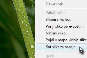 Kliknite na ozadje z desnim miškinim gumbom in izberite Kot slika za ozadje. V Firefox-u izberite Nastavi za sliko ozadja namizja. |