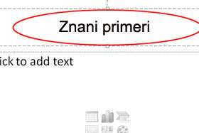 Zgoraj pritisnite gumb New slides (gl. 1.lekcijo, 4.sliko). V meniju izberite gumb Layout, potem pa Title and Content (1.lekcija, 5.slika). V polje vnesite naslov Znani primeri.