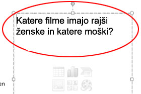 V desni stolpič (poleg grafa) napišite vprašanje: Katere filme imajo rajši ženske in katere moški?. Vse skupaj shranite. Levo vidite kaj smo ustvarili danes.