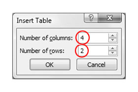 Pojavi se novo okno. Tam kjer piše Number of columns (število stolpcev) določite število 4, tam pa kjer piše Number of rows (število vrstic) 2, kot je prikazano na levi sliki.
