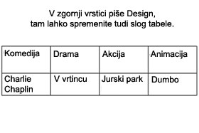 Komedija Drama Akcija Animacija Charlie Chaplin V vrtincu Jurski park Dumbo oziroma tako, kakor vidite na fotografiji desno. V zgornji vrstici piše Design, tam lahko določite tudi grafični izgled tabele. |