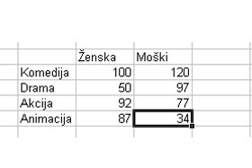 Najprej se bomo naučili narediti tabelo in grafe. Kliknite na drugi list (diapozitiv), z naslovom Vrste filmov.
