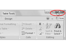 Sedaj zaprite okno preglednica, kot je prikazano na sliki. Lotili se bomo še drugega besedilnega stolpiča.