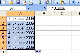 Datumi bi se vam morali sedaj izpisati. Seveda pa lahko spisek podaljšate tako, da ponovite postopek in z miško povlečete še bolj navzdol.