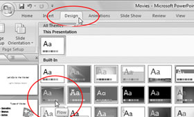 Čas je, da bomo našo lekcijo popestrili in jo naredili še bolj zanimivo. Najprej bomo spremenili dizajn. V zgornjem meniju je zavihek Design (glej fotografijo), pritisnite nanj.