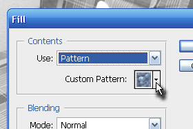 V novem oknu Use preko izbirnika določite Pattern in nato kliknite na puščico navzdol pri polju Custom Pattern (glej sliko)... |