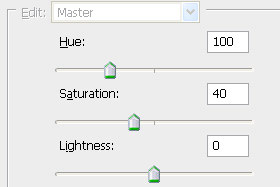 Hue nastavite 100, Saturation 40 in potrdite na gumb OK. |